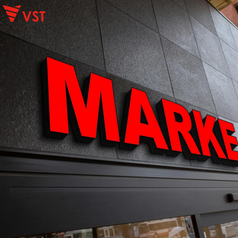 VST مُضيء حسب الطلب بتصاميم لافتات للافتات للمحلات 3D شعار LED إلكتروني